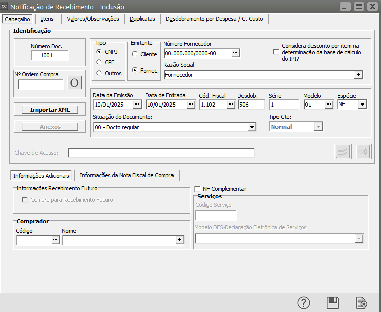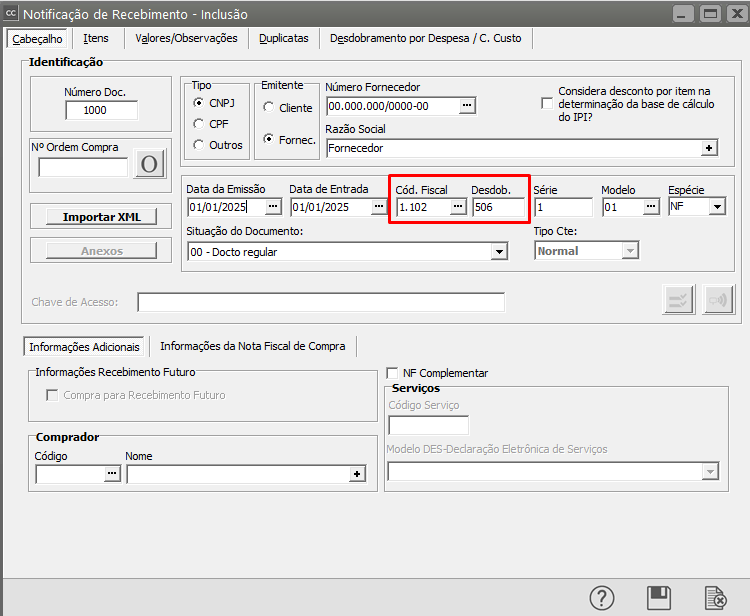 Se você realizar o movimento de entrada da mercadoria diretamente no Sistema Controle de Estoque, essa movimentação deverá ser realizada com o Documento de Considera no Cálculo do Custo