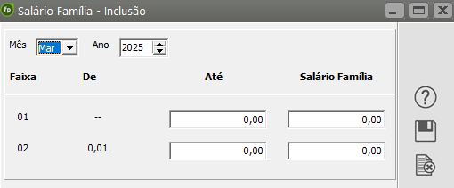 Sempre que houver alteração na tabela de Salário Família, o Sistema terá uma atualização para que a nova tabela seja cadastrada automaticamente, caso você queira ou precise realizar o cadastro manualmente, siga as instruções abaixo: