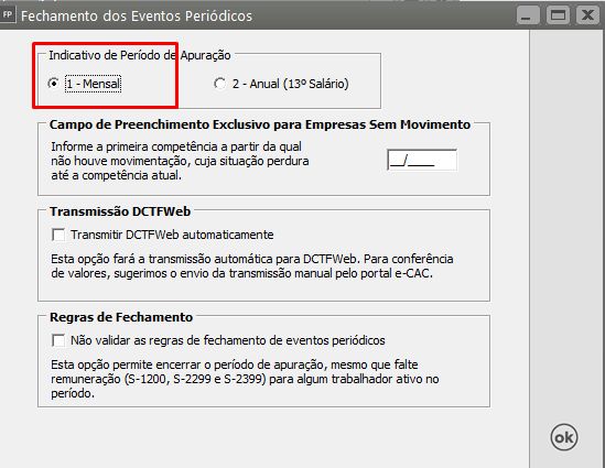Selecione a opção Mensal e clique em OK