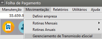 Depois de todos os eventos enviados e conferidos no Portal do eSocial, para que você consiga fazer a conferência das informações e gere o eCAC, será necessário Fechar os Eventos Periódicos, para isso acesse o menu Movimentação>Gerenciamento de Transmissão do eSocial