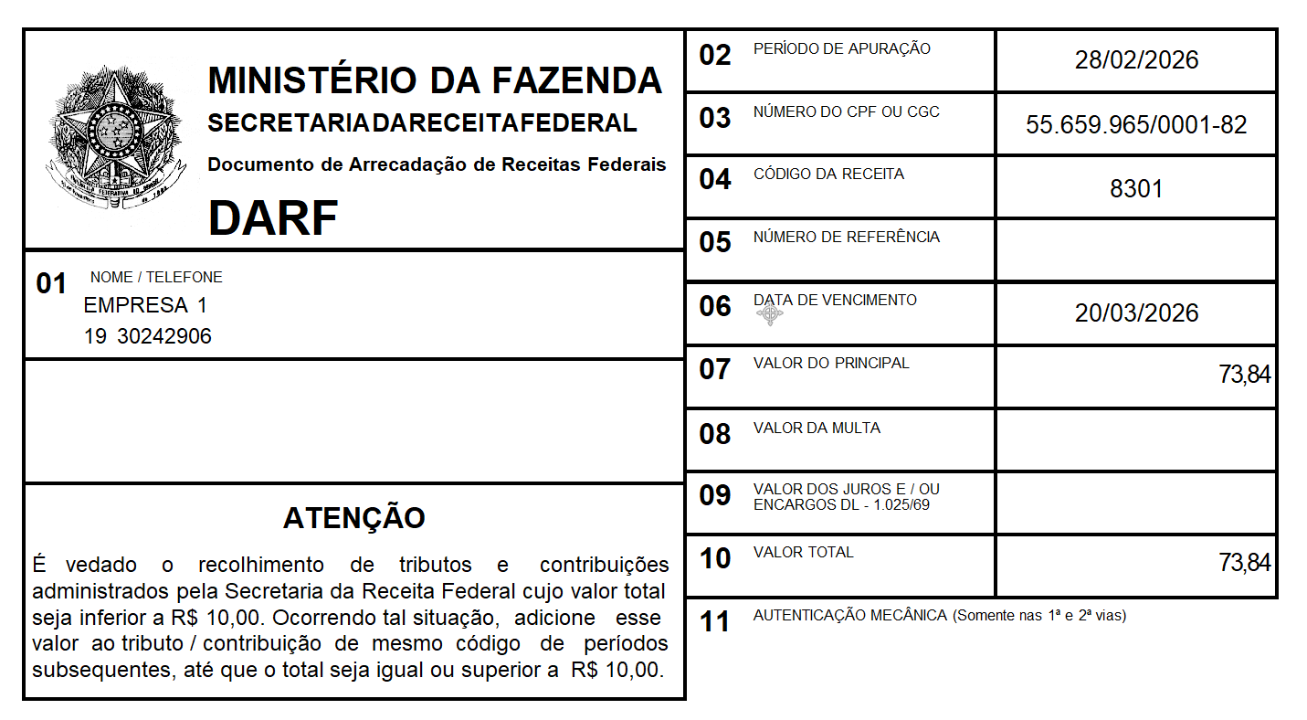 Defina o sistema na empresa matriz e acesse Relatórios>Guias de Recolhimento>DARF>PIS