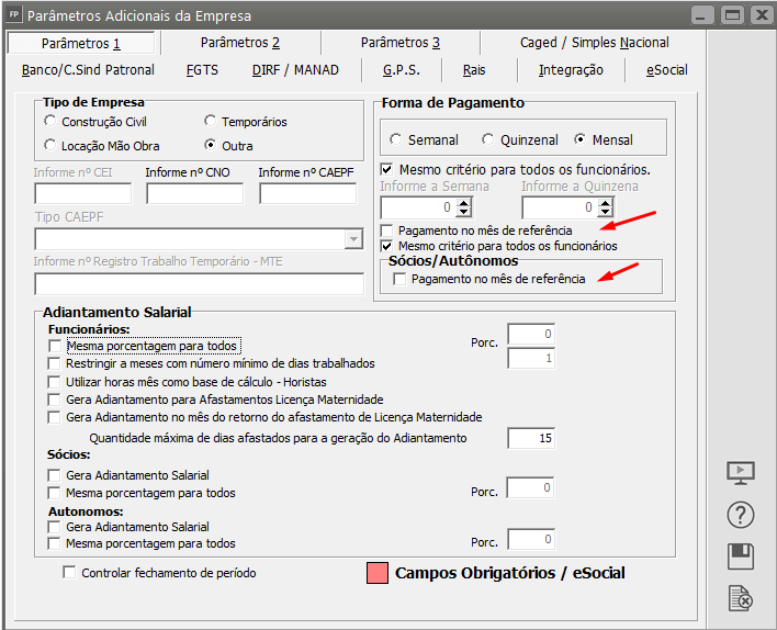 É uma das questões mais importantes da parametrização do sistema, principalmente se você calcula adiantamento salarial.