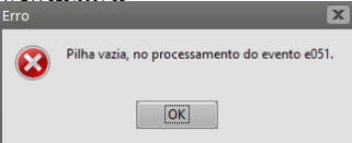 Caso ocorra mensagem Pilha vazia no processamento do evento eXXX na geração de algum Modo de Geração no Sistema