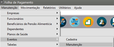 Será necessário acessar o menu Manutenção>Eventos>Manutenção