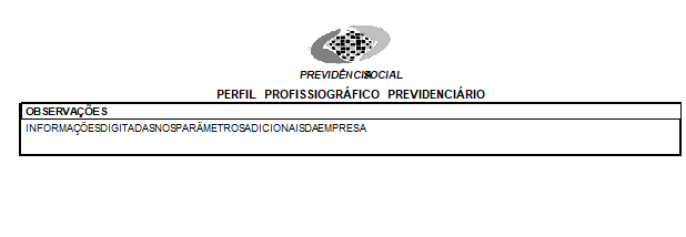 - Observações: Devem ser incluídas neste campo, informações necessárias à análise do PPP, bem como facilitadoras do requerimento do benefício, como por exemplo, esclarecimento sobre alteração de razão social da empresa, no caso de sucessora ou indicador de empresa pertencente a grupo econômico. As informações cadastradas no campo Observações serão impressas no Perfil Profissiográfico Previdenciário.