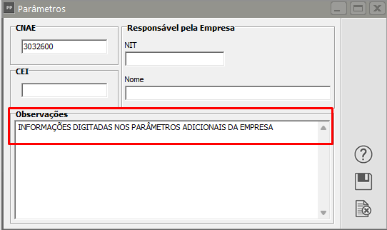 As observações informadas nos Parâmetros Adicionais da Empresa serão impressas no PPP