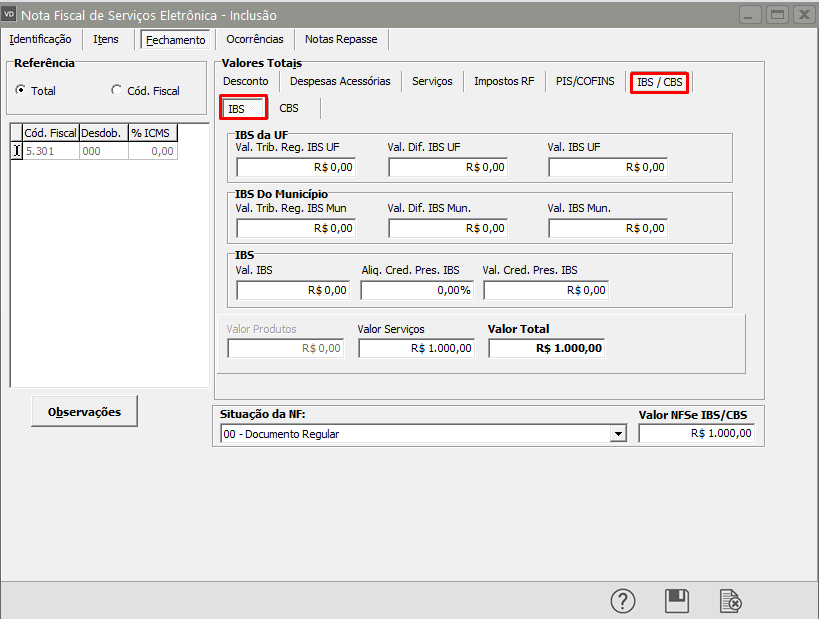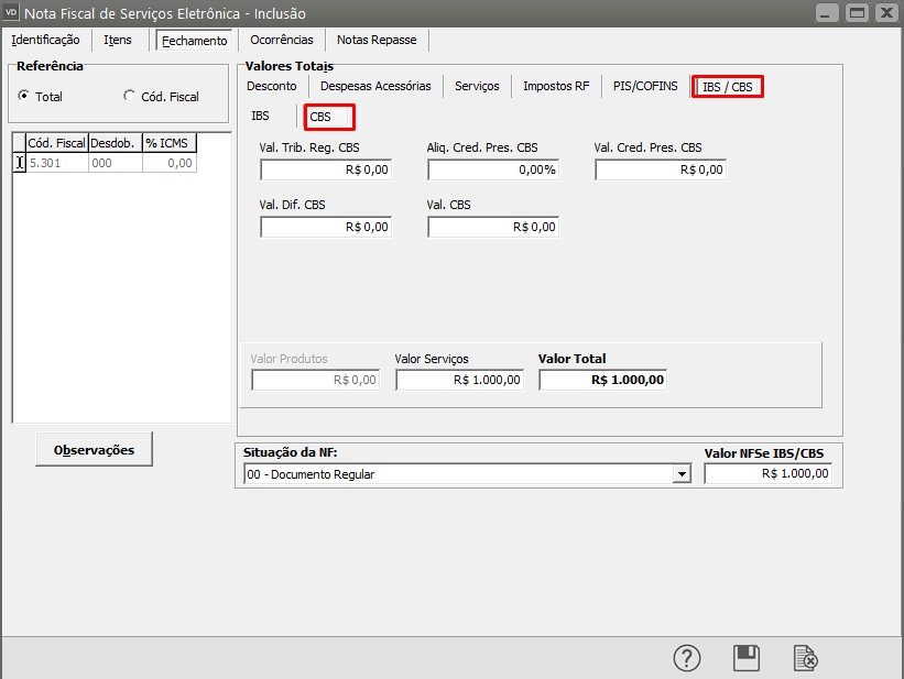 - Valor do Reembolso ou Ressarcimento - utilizado para não inclusão na base de cálculo do ISS e do IBS e da CBS da NFSe que está sendo emitida