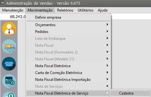 - Cadastro de Nota Fiscal de Serviço Eletrônica