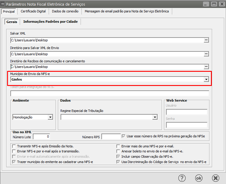 1) Parâmetros do Gerenciado da NFSe - Ginfes ou São Paulo