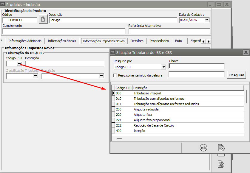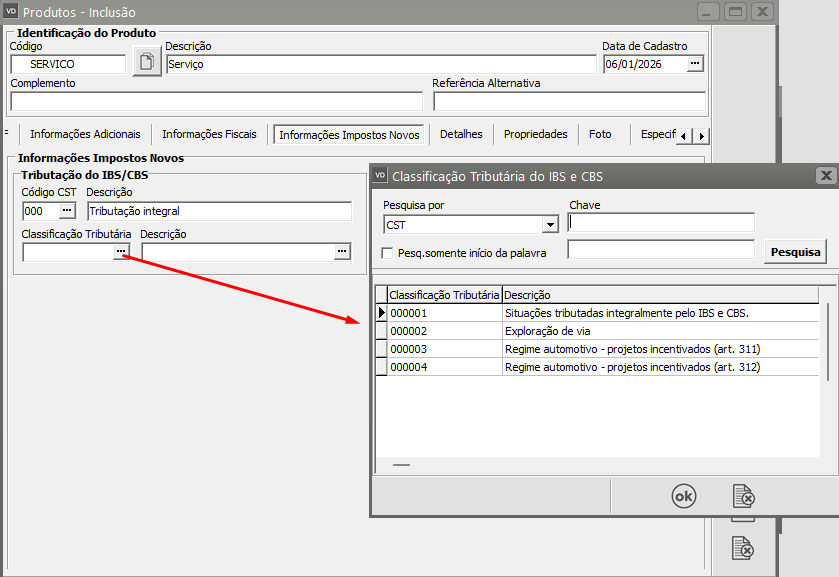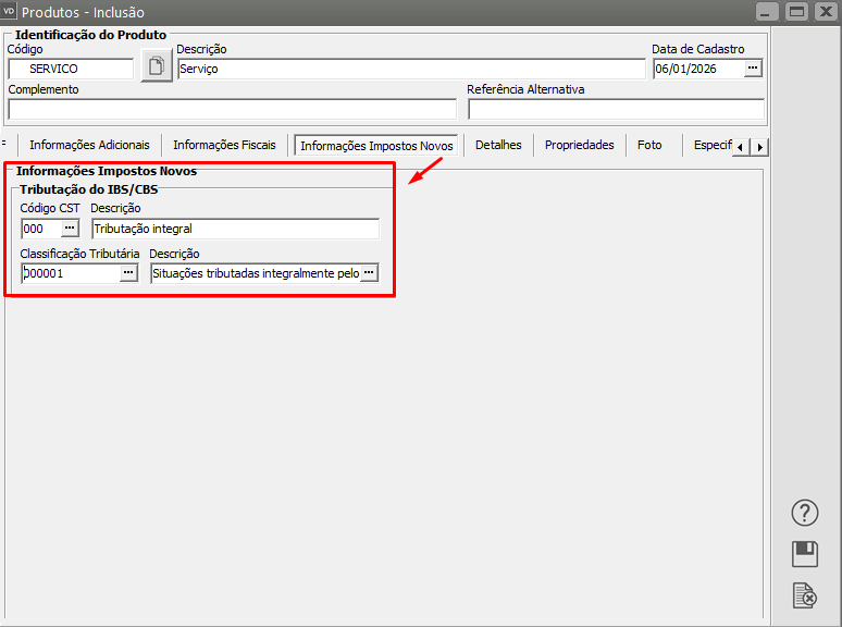 3) Você poderá informar os Códigos de CST do IBS e da CBS e de Classificação Tributária da Reforma Tributária no próprio Cadastro do Serviço, menu Manutenção>Produtos>Manutenção