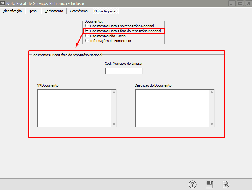- Motivo Não Informações da Nota - Não informado na Nota de Origem, Dispensado do NIF, Não exigência do NIF